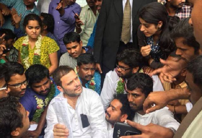 ഹെദരാബാദ്: ദളിത് വിദ്യാര്ഥി രോഹിത് വെമുലയ്ക്ക് നീതി ഉറപ്പാക്കണമെന്നാവശ്യപ്പെട്ട് രാഹുല് ഗാന്ധിയും നിരാഹാരസമരത്തില്. ഹൈദരാബാദ് യൂണിവേഴ്സിറ്റിയിലെ വിദ്യാര്ഥികള് നടത്തുന്ന സമരത്തിന് ഐക്യദാര്ഢ്യവുമായാണ് രാഹുല് വന്നത്. അര്ധരാത്രിയോടെ യൂണിവേഴ്സിറ്റിയിലെത്തിയ രാഹുല് ഗാന്ധി വിദ്യാര്ഥികള് സംഘടിപ്പിച്ച പ്രതിഷേധ പ്രകടനത്തില് പങ്കെടുത്തു. രോഹിത് വെമുലയുടെ 27ാം ജന്മദിനമായ വെള്ളിയാഴ്ച രാത്രി വിദ്യാര്ഥികള് മെഴുകുതിരി ദീപം തെളിയിച്ചു. 2000ത്തോളം വിദ്യാര്ഥികളാണ് വെള്ളിയാഴ്ച നടന്ന മെഴുകിതിരി റാലിയില് പങ്കെടുത്തത്. ഇന്നു വിദ്യാര്ഥികള് നടത്തുന്ന കൂട്ടനിരാഹാര സമരത്തില് രാഹുല് ഗാന്ധിയും പങ്കുചേരുമെന്ന് എന്.എച്ച്.യു.ഐ ദേശീയ പ്രസിഡന്റ് റോജി എം. ജോണ് പറഞ്ഞു. അതിനിടെ നേരത്തെ സസ്പെന്ഷനിലായ രണ്ടു ഗവേഷണ വിദ്യാര്ഥികള് ഉള്പ്പെടെ മൂന്നു വിദ്യാര്ഥികള് നടത്തുന്ന അനിശ്ചിതകാല നിരാഹാര സമരം തുടരുകയാണ്. ശനിയാഴ്ച പുലര്ച്ചെ മുതല് തന്നെ രാഹുല് ഗാന്ധി നിരാഹാരസമരം ആരംഭിച്ചു. ഇതു രണ്ടാം തവണയാണ് രാഹുല് ഗാന്ധി ഹൈദരാബാദ് യൂണിവേഴ്സിറ്റിയിലെ വിദ്യാര്ഥികള്ക്ക് ഐക്യദാര്ഢ്യവുമായെത്തുന്നത്.