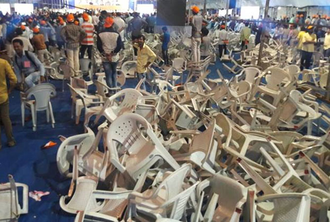 സൂറത്ത്: ബിജെപി ദേശീയ അധ്യക്ഷന് അമിത് ഷാ പങ്കെടുപ്പിച്ച് സൂറത്തില് ബിജെപി നടത്തിയ യോഗം ഹാര്ദിക് പട്ടേലിന്റെ അനുയായികള് അലങ്കോലപ്പെടുത്തി. പുതുതായി ചുമതലയേറ്റ വിജയ് രൂപാനി സര്ക്കാരിലെ പട്ടേല് മന്ത്രിമാര്ക്ക് സ്വീകരണം നല്കുന്ന പരിപാടിയായിരുന്നു സംഘടിപ്പിച്ചിരുന്നത് .ഗുജറാത്തില് പിണങ്ങി നില്ക്കുന്ന പട്ടേല് സമുദായത്തെ അടുപ്പിക്കാനുള്ള ബിജെപിയുടെ ശ്രമമാണ് സംവരണ പ്രക്ഷോഭകാരികള് അടിച്ചു തകര്ത്തത്. വ്യാഴാഴ്ച വൈകുന്നേരമാണ് സമ്മേളനം നടന്നത്. ഈ സമ്മേളനത്തിലേക്ക് ഹര്ദിക് പട്ടേല്സിന്ദാബാദ് എന്ന മുദ്രാവാക്യം വിളിച്ച് കടന്നു വന്ന പട്ടേല് വിഭാഗക്കാര് സമ്മേളനം അലങ്കോലപ്പെടുത്തുകയായിരുന്നു. വേദിയിലുണ്ടായിരുന്ന കസേരകള് അടിച്ചു തകര്ത്തു. അമിത് ഷായും കേന്ദ്ര മന്ത്രി പുരുഷോത്തം രൂപാലയും പരിപാടിയില് പങ്കെടുത്തു കൊണ്ടിരിക്കുകയായിരുന്നു. ഇതിനിടെ പ്രസംഗിക്കാനായി എഴുന്നേറ്റ അമിതാ ഷാക്ക് ആറ് മിനിറ്റ് മാത്രമാണ് സദസ്സിനെ അഭിസംബോധന ചെയ്യാനായത്. വേദിയിലേക്ക് പാഞ്ഞടുക്കാന് ശ്രമിച്ച 40ഓളം വരുന്ന പട്ടേല് സമുദായ നേതാക്കളെ പൊലീസ് തടഞ്ഞു.ബി.ജെ.പിയുടെ ശക്തി തെളിയിക്കുന്നതിന് പുറമെ സംവരണ വിഷയത്തില് നേതൃത്വവുമായി പിണങ്ങിനില്ക്കുന്ന പട്ടേല് സമുദായക്കാരെ അനുനയിപ്പിക്കുകയെന്ന ലക്ഷ്യംകൂടി മുന്നില്കണ്ടാണ് അമിത് ഷായുടെ നിര്ദേശപ്രകാരം സൂറത്തില് റാലി സംഘടിപ്പിച്ചത്. എന്നാല്, കോണ്ഗ്രസിന്റെ ഗൂഢാലോചനയാണ് പരിപാടി അലങ്കോലപ്പെടാന് കാരണമെന്ന് സംഘം ബിജെപി നേതാക്കള് ആരോപിച്ചു.