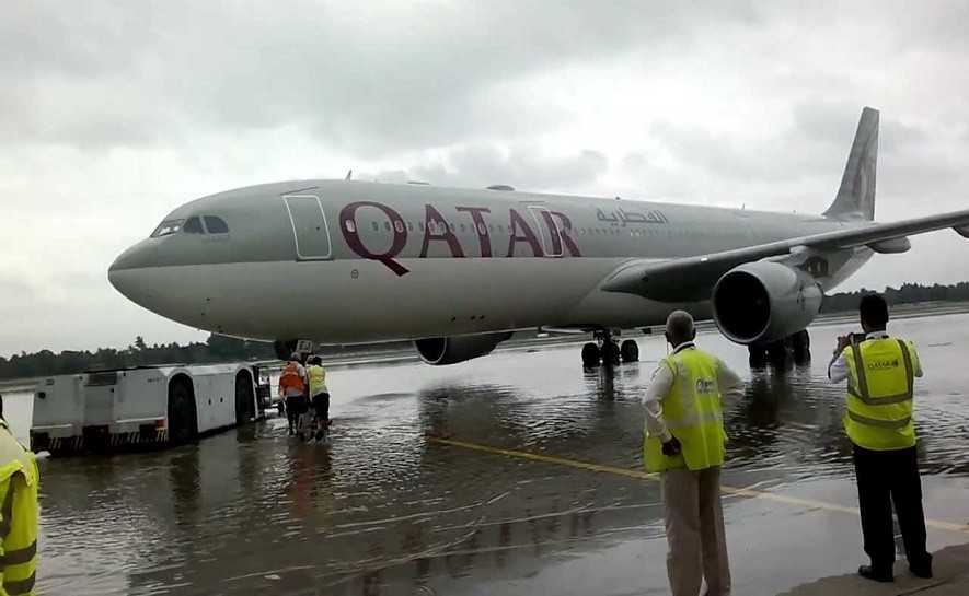 കൊച്ചി: നെടുമ്പാശേരി വിമാനത്താവളത്തില് കനത്ത മഴയില് വിമാനം റണ്വേയില് നിന്ന് തെന്നി മാറി. പുലര്ച്ചെ 2.18ന് ഇറക്കിയ ഖത്തര് എയര്വേയ്സ് വിമാനമാണ് തെന്നിമാറിയത്. പൈലറ്റിന്റെ ജാഗ്രത കൊണ്ടാണ് അപകടം ഒഴിവായത്. ഈ വിമാനത്തില് പോകേണ്ടവരെ 10.30നുള്ള മറ്റൊരു വിമാനത്തില് യാത്രയാക്കും.