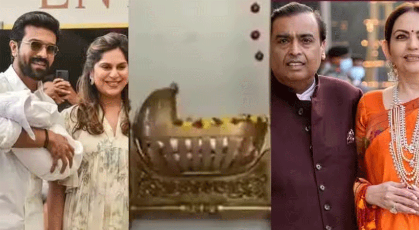 പ്രശസ്ത തെന്നിന്ത്യൻ താരം രാം ചരണിന്റെ കുഞ്ഞിന് സ്വർണ്ണ തൊട്ടിൽ സമ്മാനിച്ച് മുകേഷ് അംബാനി. ഇന്ത്യയിലെയും ഏഷ്യയിലെ തന്നെയും ഏറ്റവും വലിയ കോടീശ്വരനായ മുകേഷ് അംബാനിയും കുടുംബവും ചേർന്ന് ഒരു കോടി രൂപ വിലയുള്ള ഒരു സ്വർണ്ണ തൊട്ടിൽ സമ്മാനിച്ചതായാണ് റിപ്പോർട്ട്.