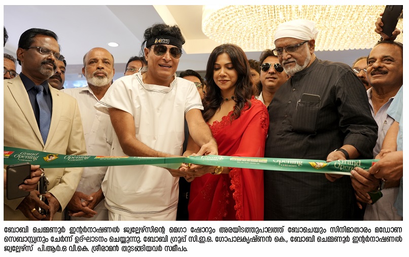 കോഴിക്കോട്: ബോബി ചെമ്മണൂര് ഇന്റര്നാഷണല് ജ്വല്ലേഴ്സിന്റെ മാവൂര് റോഡിലും, പാളയത്തുമുള്ള ഷോറൂമുകള് കൂടുതല് സ്റ്റോക്കും സെലക്ഷനുമായി അതിവിപുലമായ പാര്ക്കിംഗ് സൗകര്യത്തോടുകൂടി കോഴിക്കോട് അരയിടത്തുപാലത്തെ നാല് നില കെട്ടിടത്തില് പ്രവര്ത്തനമാരംഭിച്ചു. പുതിയ മെഗാ ഷോറൂമിന്റെ ഉദ്ഘാടനം വന്ജനാവലിയുടെ സാന്നിധ്യത്തില് ബോചെയും സിനിമാതാരം മഡോണ സെബാസ്റ്റ്യനും ചേര്ന്ന് നിര്വ്വഹിച്ചു. ഉദ്ഘാടനം പ്രമാണിച്ച് ജൂണ് 30 വരെ വിവാഹാവശ്യത്തിന് 25 പവന് മുകളില് പര്ച്ചേയ്സ് ചെയ്യുന്ന ഏവര്ക്കും ബോചെ നേരിട്ട് 1 ലക്ഷം രൂപ സമ്മാനം നല്കുന്നു. കൂടാതെ 1 പവന് വരെയുള്ള സ്വര്ണാഭരണങ്ങള്ക്ക് പണിക്കൂലി ഈടാക്കുന്നതല്ല. കൂടുതല് പര്ച്ചേയ്സ് ചെയ്യുന്നവര്ക്ക് സ്പെഷ്യൽ ഡിസ്കൗണ്ട് ലഭിക്കും.