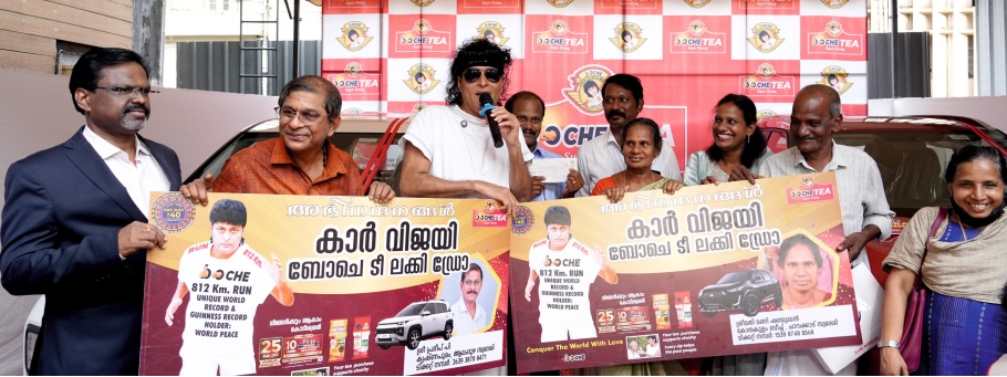 ബോചെ ടീ ലക്കി ഡ്രോയിലൂടെ കാറുകള് സമ്മാനമായി ലഭിച്ച ആലപ്പുഴ കൃഷ്ണപുരം സ്വദേശി പി. പ്രദീപ്, ചാവക്കാട് കോതമംഗലം സ്വദേശി മണി ഷണ്മുഖന് എന്നിവര്ക്ക് ബോചെ കാറുകള് സമ്മാനിച്ചു. ബോബി ഗ്രൂപ്പിന്റെ തൃശൂരിലെ കോര്പ്പറേറ്റ് ഓഫീസില് വെച്ചായിരുന്നു താക്കോല്ദാനം. ഹ്യൂണ്ടായ് എക്സ്റ്റര്, നിസാന് മാഗ്നൈറ്റ് എന്നീ കാറുകളാണ് സമ്മാനമായി നല്കിയത്.