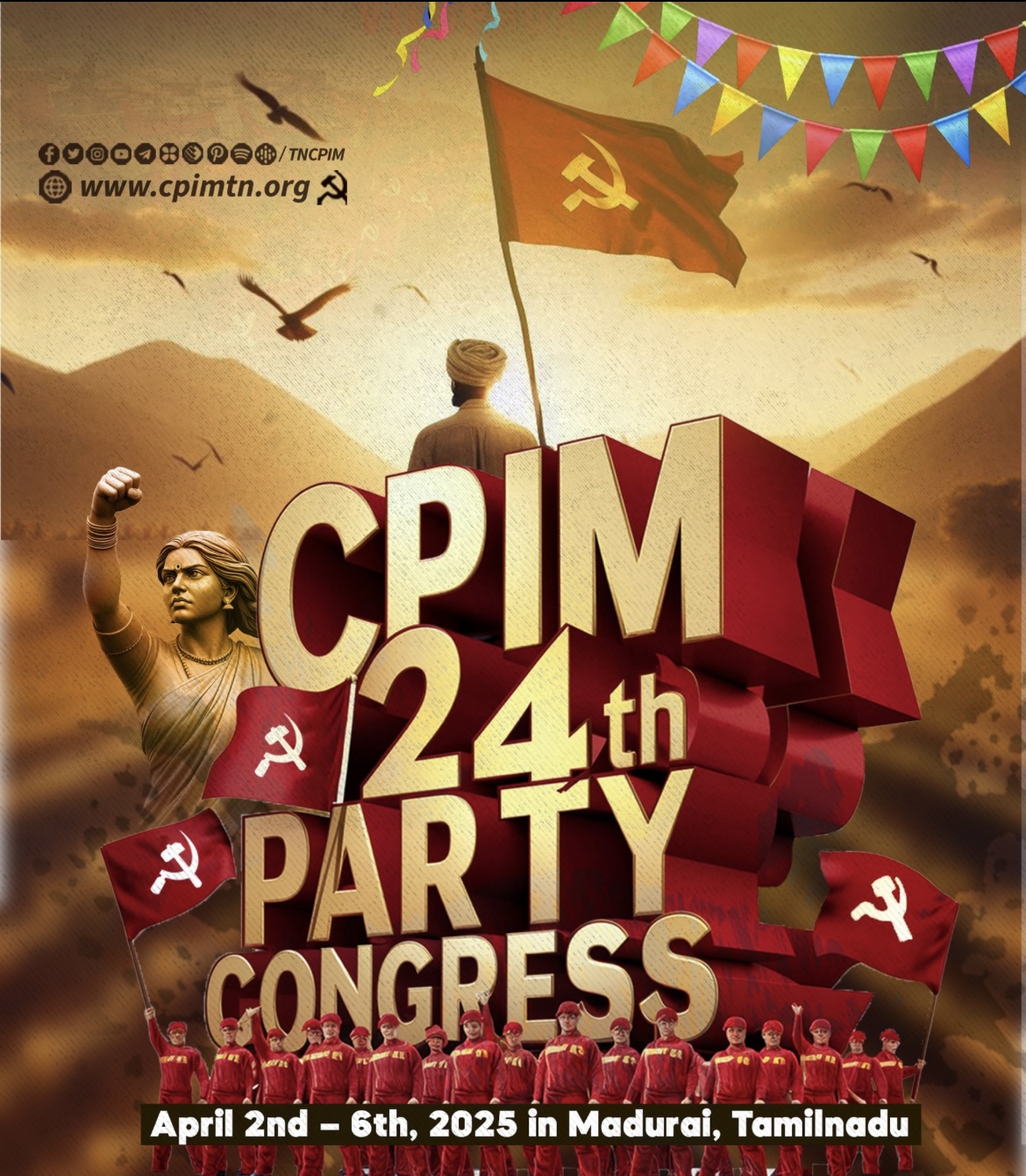 മധുര: സിപിഎം 24ാം പാര്ട്ടി കോണ്ഗ്രസിന് മധുരയില് തുടക്കമായി ബുദ്ധദേബ് ഭട്ടാചാര്യ കവാടത്തില് മുതിര്ന്ന നേതാവ് ബിമന് ബസു പതാക ഉയര്ത്തി. പൊളിറ്റ് ബ്യൂറോ കോഓര്ഡിനേറ്റര് പ്രകാശ് കാരാട്ടാണ് ഉദ്ഘാടകന്. മണിക് സര്ക്കാര് അധ്യക്ഷനും. സിപിഎമ്മിന്റെ മുതിര്ന്ന നേതാക്കളെല്ലാം സമ്മേളന നഗരിയില് സജീവമാണ്. പി ബി അംഗം ബി വി രാഘവലു സംഘടനാ റിപ്പോര്ട്ട് അവതരിപ്പിക്കുന്നത്. ഉദ്ഘാടന സമ്മേളനത്തില് സിപിഐ ജനറല് സെക്രട്ടറി ഡി രാജ ഉള്പ്പെടെ വിവിധ ഇടതുപാര്ട്ടി പ്രതിനിധികള് പങ്കെടുക്കുന്നുണ്ട്.