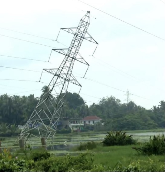 കോഴിക്കോട്: കനത്ത കാറ്റിലും മഴയിലും കോഴിക്കോട് നല്ലളത്ത് 110 കെ വി ലൈന് ടവര് ചെരിഞ്ഞങ്കിലും വന് ദുരന്തം ഒഴിലായി. ലൈന് ടവര് നിലംപൊത്താതിരുന്നതിനാലാണ് വന്ദുരന്തം ഒഴിവായത്. വെള്ളക്കെട്ടില് സ്ഥാപിച്ച ടവറാണ് ഇന്നലെ രാത്രിയിലെ കാറ്റിലും മഴയിലും ചെരിഞ്ഞത്. കാറ്റും മഴയും തുടര്ന്നാല് ടവര് പൂര്ണമായും വീഴുമെന്ന ആശങ്കയിലാണ് പ്രദേശവാസികള്.