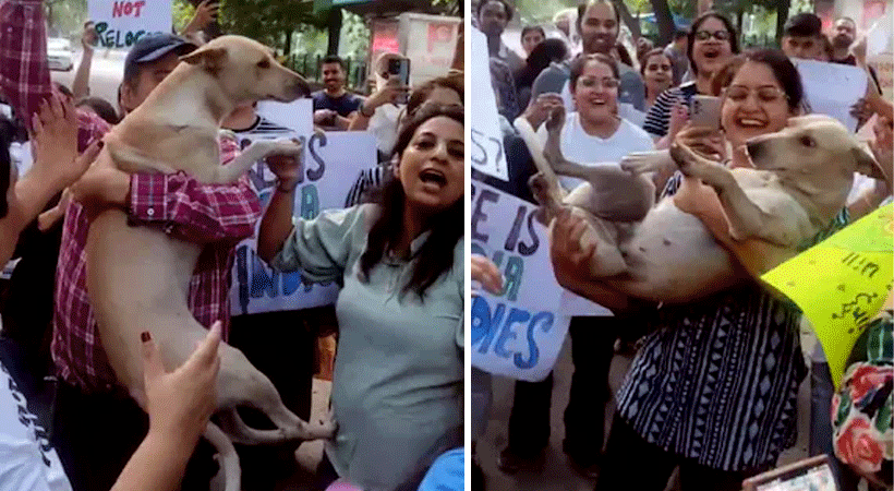 തെരുവ് നായ്ക്കളെ ഷെൽട്ടറുകളിലേക്ക് മാറ്റണമെന്ന സുപ്രീം കോടതിയുടെ നിർദ്ദേശത്തിനെതിരെ മൃഗാവകാശ സംഘടനകളും മൃഗസ്നേഹികളും ദേശീയ തലസ്ഥാനത്ത് റാലികൾ നടത്തുന്നത് തുടരുകയാണ്. ആറ് മുതൽ എട്ട് ആഴ്ചയ്ക്കുള്ളിൽ തെരുവ് നായ്ക്കളെ പിടികൂടി ഷെൽട്ടറുകളിൽ പാർപ്പിക്കണമെന്നും, പൊതു ഇടങ്ങളിലേക്ക് തിരികെ വിടുന്നില്ലെന്ന് ഉറപ്പാക്കണമെന്നുമാണ് ജസ്റ്റിസ് ജെ ബി പർദിവാലയും ആർ. മഹാദേവനും അടങ്ങിയ ഡിവിഷൻ ബെഞ്ച് ഡൽഹി-എൻസിആർ അധികൃതരോട് നിർദ്ദേശിച്ചിട്ടുള്ളത്. എന്നാൽ, ഈ പ്രതിഷേധങ്ങൾക്കിടെ നടന്ന ഒരു സംഭവം സോഷ്യൽ മീഡിയയിൽ വൈറലായിരിക്കുകയാണ്.