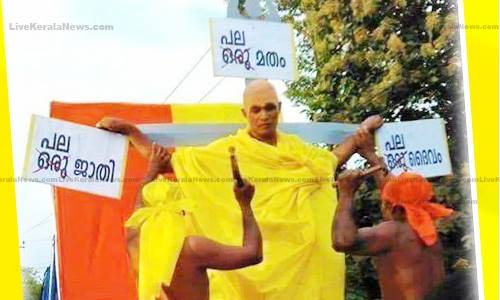 കണ്ണൂര് തളിപ്പറമ്പിലാണ് സിപിഐഎമ്മിന്റെ നേതൃത്ത്വത്തില് ശനിയാഴ്ച വൈകുന്നേരം നടന്ന ഘോഷയാത്രയില് ഗുരുദേവനെ കുരിശിലേറ്റുന്ന നിശ്ചല ദൃശ്യം പ്രദര്ശിപ്പിച്ചത്. ഗുരുവാക്യങ്ങളെ വികൃതമായും നിശ്ചല ദൃശ്യത്തില് പ്രദര്ശിപ്പിച്ചിരുന്നു. സിപിഐഎമ്മിന്റെ മറ്റൊരു ഘോഷയാത്രയില് ഗുരുദേവന്റെ കഴുത്തില് കയറിട്ട് വലിക്കുന്ന നിശ്ചല ദൃശ്യമാണ് അവതരിപ്പിച്ചത്.