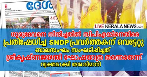 ബാലസംഘത്തിന്റെ നേതൃത്ത്വത്തില് സംസ്ഥാന വ്യാപകമായി നടന്നത് ഓണാഘോഷങ്ങളുടെ സമാപനമാണ് എന്ന വിശദീകരണമാണ് കഴിഞ്ഞ ദിവസം പോളിറ്റ് ബ്യൂറോ അംഗം പിണറായി വിജയന് നല്കിയത്. എന്നാല് ഞാറാഴ്ച ദേശാഭിമാനി കൊച്ചി എഡിഷനിലെ ആദ്യ പേജില് പ്രസിദ്ധീകരിച്ച ചിത്രത്തിലെ ബാനറില് ശ്രീകൃഷ്ണ ജയന്തി ഘോഷയാത്ര എന്ന എഴുത്ത് വ്യക്തമാണ്. ഇതോടെ സിപിഐ(എം) നേതൃത്ത്വത്തിന്റെ അവകാശവാദങ്ങള് പൊള്ളയായി.
